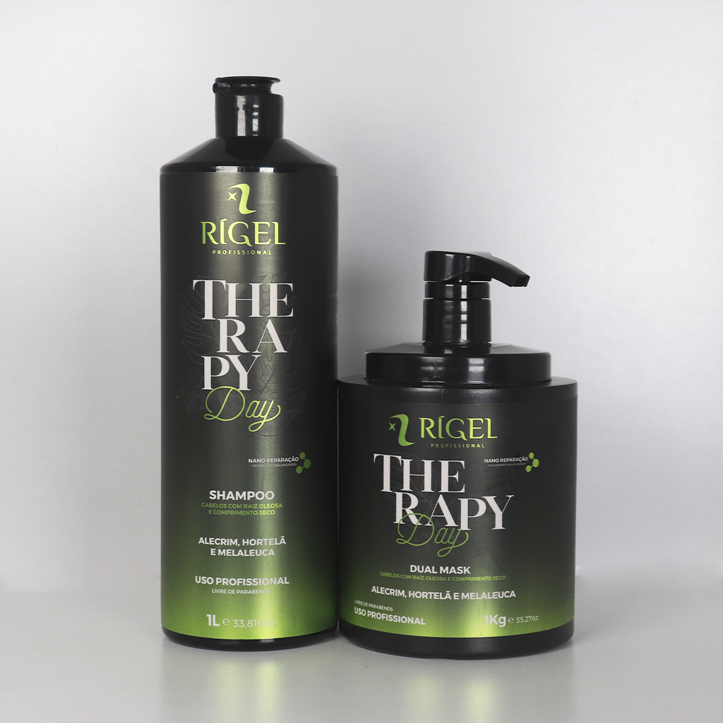 A linha Therapy Day foi desenvolvida com ativos que auxiliam o equilíbrio do couro cabeludo, ideal para cabelos com raiz oleosas e comprimento seco, deixando a raiz livre da oleosidade em excesso e as pontas saudáveis, devolvendo vitalidade aos fios, e prevenindo o ressecamento.